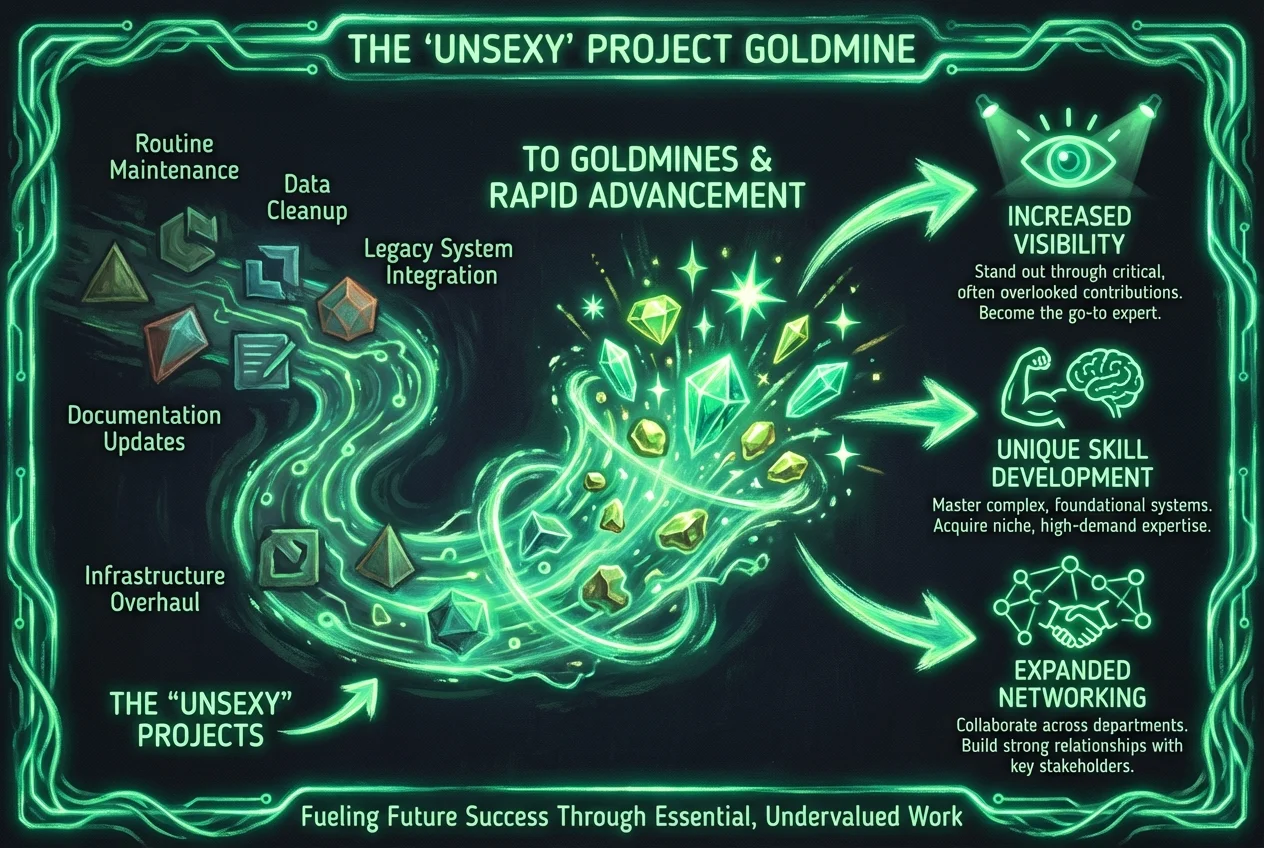 Det første karrierehack kan virke kontraintuitivt: i stedet for altid at kæmpe om de højprofilerede, glamourøse projekter, skal du aktivt opsøge de "uinteressante". Disse er ofte de projekter, som andre undgår, dem der er kritiske for virksomheden, men mangler øjeblikkelig ære eller direkte synlighed for topledelsen. Men det er netop her, deres styrke ligger.