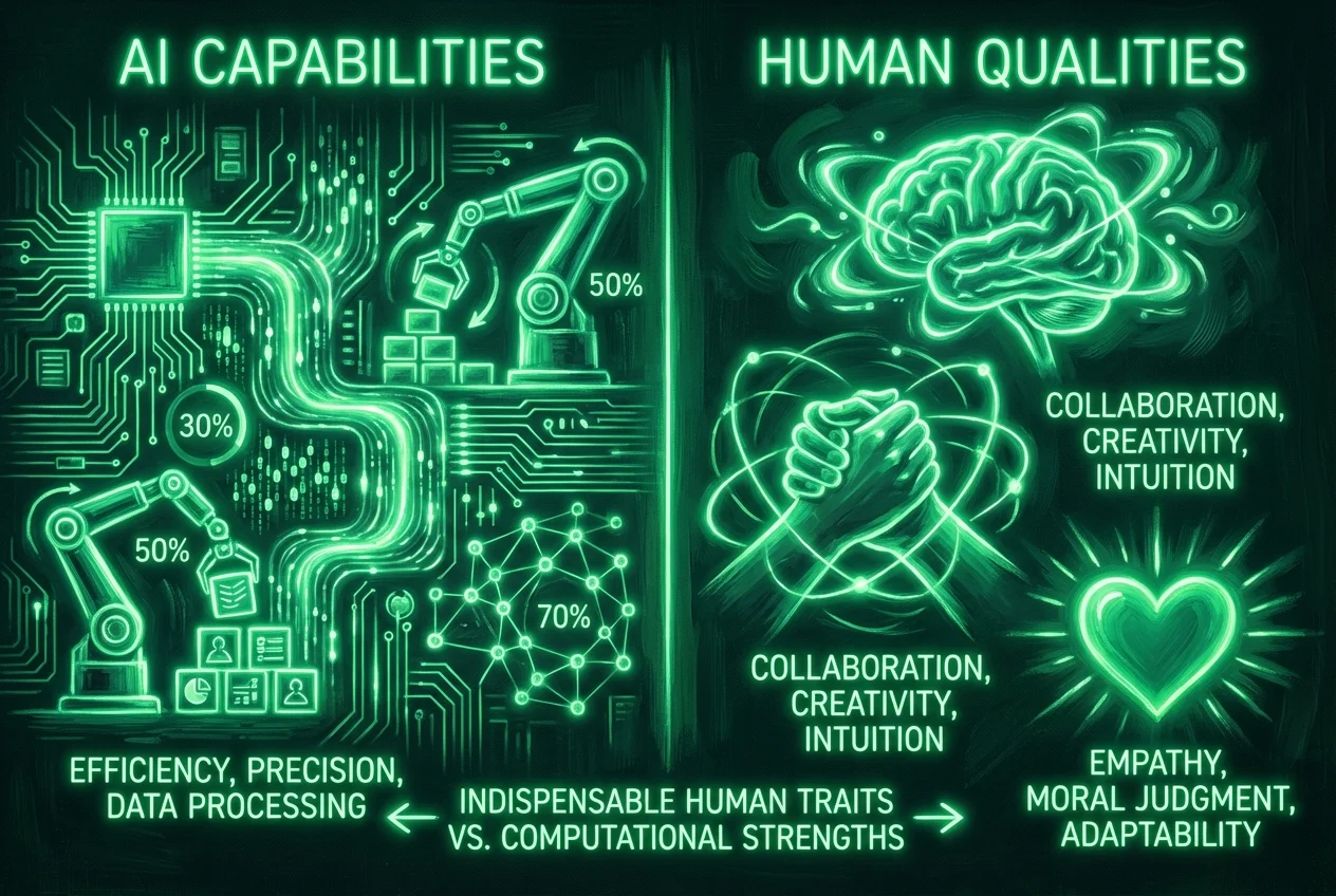 Fremtidens arbejde handler ikke om at vælge mellem menneskelige færdigheder og teknologisk dygtighed; det handler om problemfrit at integrere begge dele. De mest modstandsdygtige og efterspurgte fagfolk vil være dem, der besidder "hybridfærdigheder" – en potent kombination af teknisk ekspertise og menneskecentrerede evner. Denne blanding er nøglen til at skabe ægte robot-sikre jobs og forstå, hvordan menneskecentreret AI vil forme fremtidens arbejde.