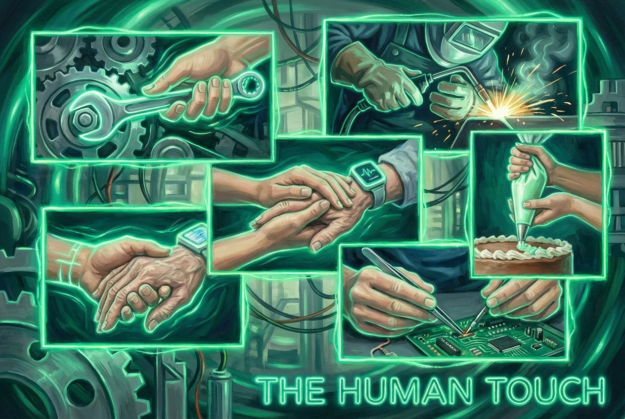 Håndværk, der involverer komplekst manuelt arbejde og æstetisk dømmekraft, såsom glasblæsning, keramik, skræddersyet tøj eller gourmetmadlavning, er i sagens natur menneskelige. Kokke, bagere og bryggere kan bruge AI til at organisere opskrifter, men kerneopgaverne med sautering, glasering og smagsprøver kræver menneskelig fingerfærdighed, tilpasningsevne og smag.