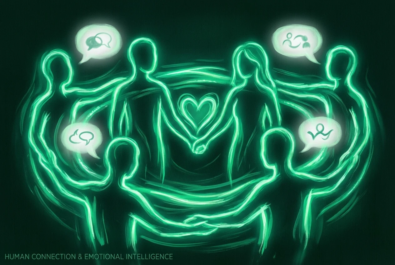 Efterhånden som AI strømliner processer og automatiserer rutineinteraktioner, vil efterspørgslen efter ægte menneskelig forbindelse, forståelse og samarbejde kun intensiveres. Interpersonelle færdigheder og emotionel intelligens er grundlaget for menneskecentrerede karrierer, der repræsenterer kerne AI-æra færdigheder, som forbliver solidt uden for nuværende AI's rækkevidde.