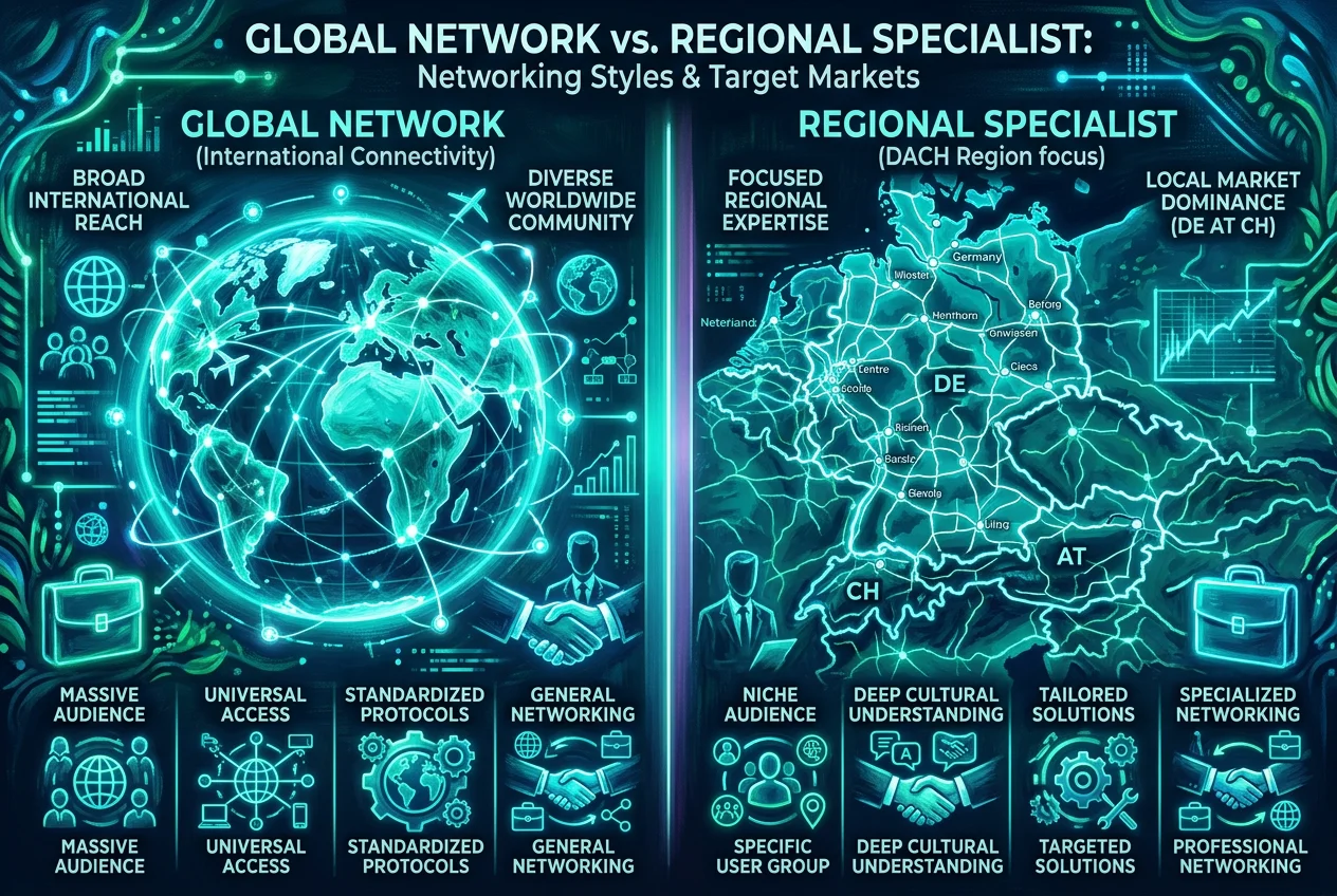 जबकि LinkedIn वैश्विक दिग्गज है, Xing उन लोगों के लिए एक महत्वपूर्ण उपकरण बना हुआ है जो "पारंपरिक" जर्मन हृदयस्थल को लक्षित कर रहे हैं। यदि आपका लक्ष्य किसी छोटे शहर में किसी छिपे हुए चैंपियन (hidden champion) या स्थानीय सरकारी संगठन के लिए काम करना है, तो Xing वह जगह है जहाँ आपको होना चाहिए।