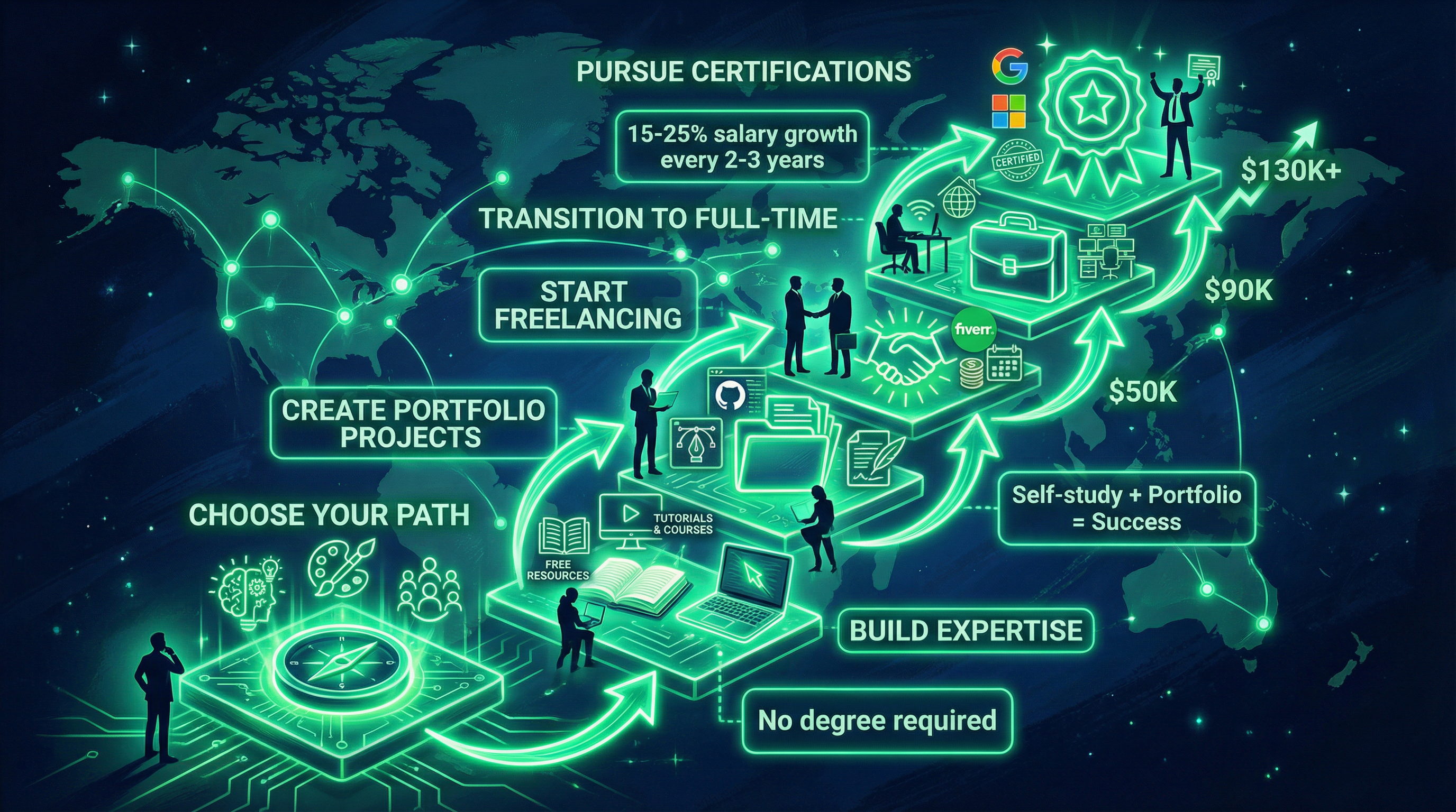 The barrier to entry is lower than ever—free learning resources, affordable bootcamps, and accessible freelance platforms democratize opportunity. Success requires discipline, consistency, and willingness to continuously learn in rapidly evolving fields.