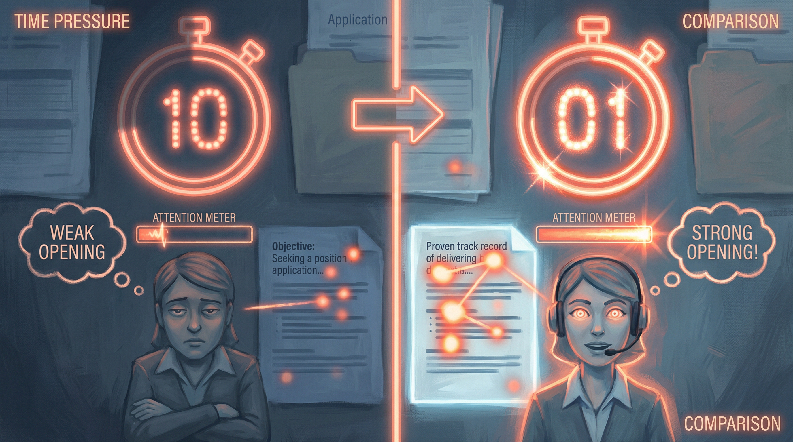 賭け金は高いです。採用マネージャーはカバーレターを読むのに平均30秒を費やし、ほとんどは最初の10秒以内に初期判断を下します。あなたの書き出しは単なる導入ではありません—それは彼らの注目を得るためのオーディションです。