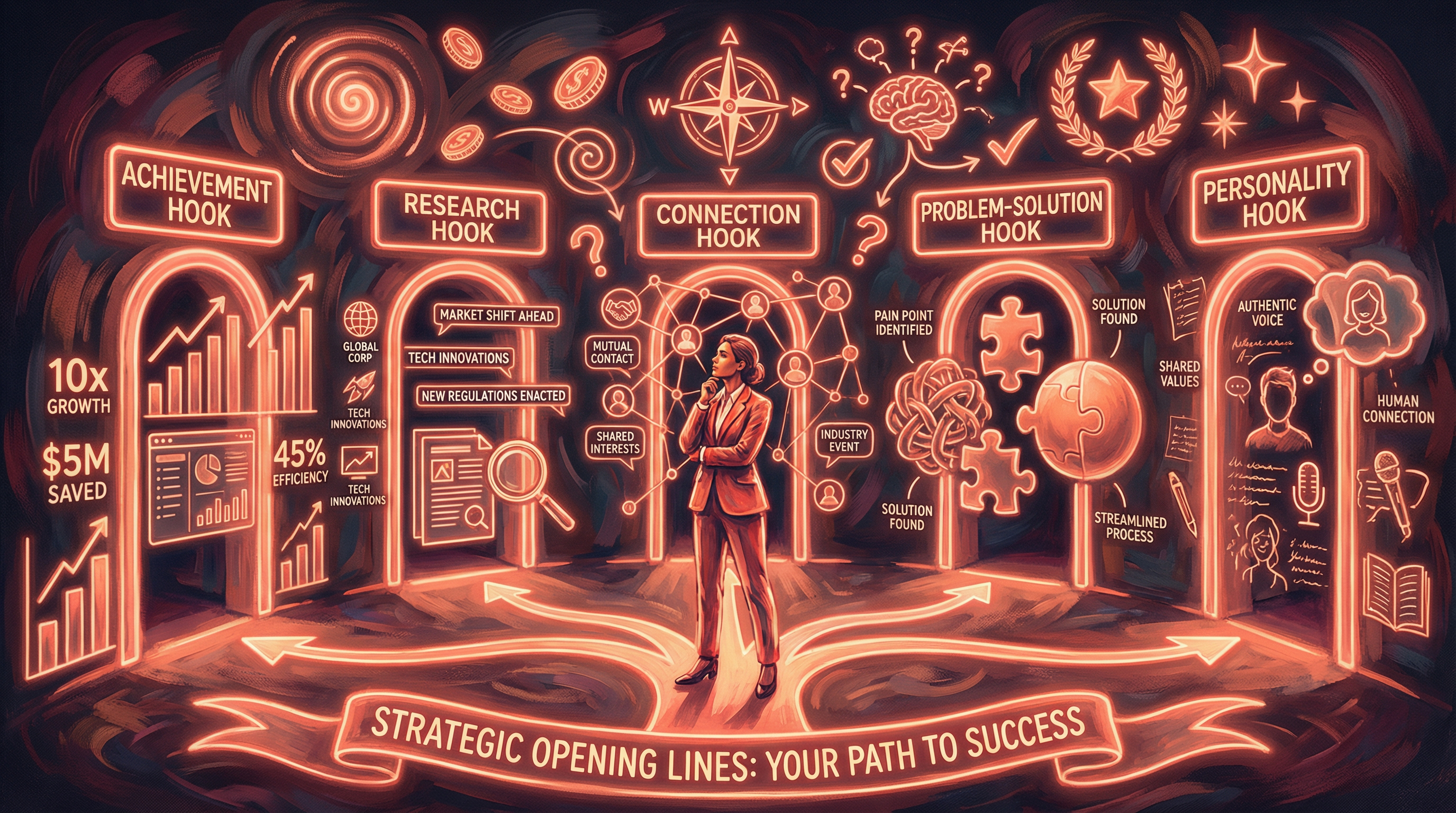 テックキャリアの成功 具体的な例に入る前に、効果的な書き出しは5つの実証済みカテゴリーに分類されることを理解してください。それぞれが異なるシナリオと性格タイプに機能します。